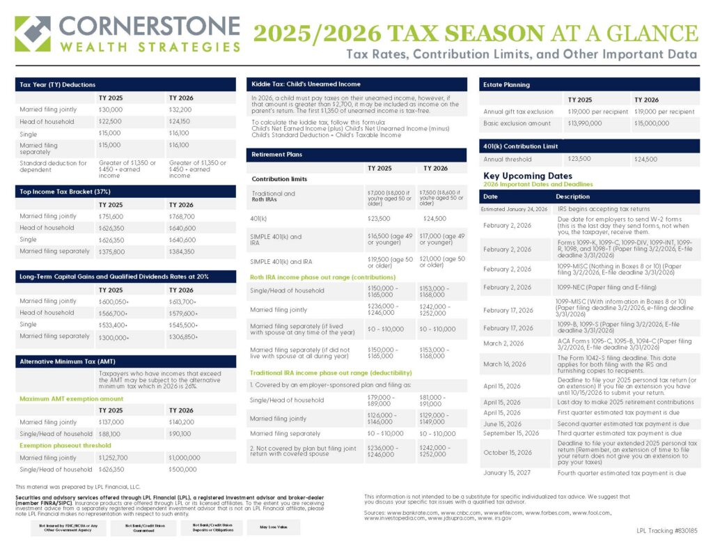 Cornerstone Wealth Strategies Tax Season at a Glance 2025-2026